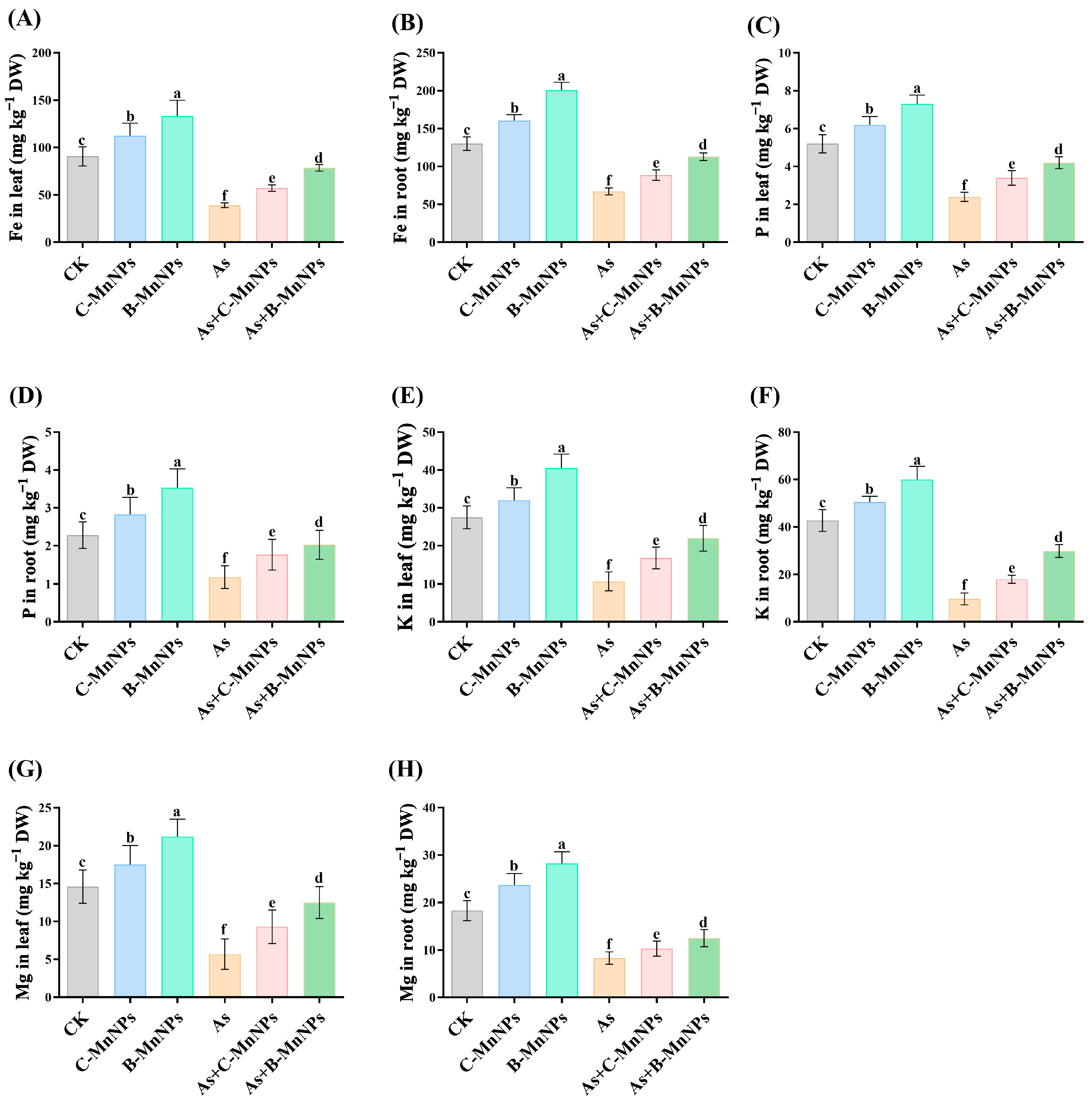 3.7. Effect of MnNPs on Element Concentration and Arsenic Accumulation