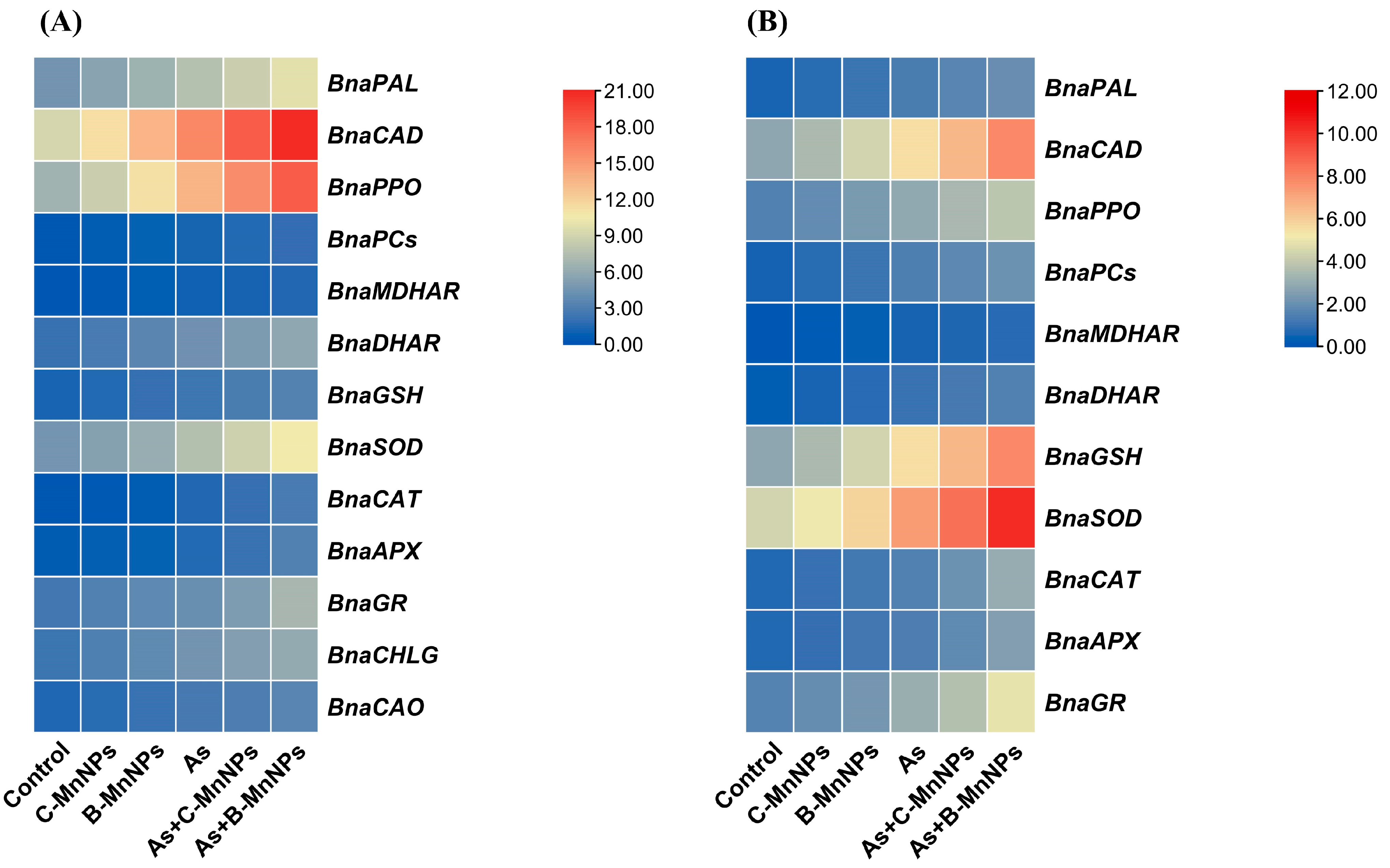 Chicago/Turabian StyleYousaf, Muhammad Arslan, Muhammad Noman, Ayesha Khalil Maan, Basharat Ali, Muhammad Kamran, Muhammad Shahbaz Naeem, Mohammad Shafiqul Islam, Yiwa Hu, Skhawat Ali, and Weijun Zhou. 2025. "Comparative Immunomodulatory Efficacy of Chemogenic and Biogenic Manganese Nanoparticles for Inducing Arsenic Stress Resilience in Rapeseed" Agronomy 15, no. 12: 2773. https://doi.org/10.3390/agronomy15122773