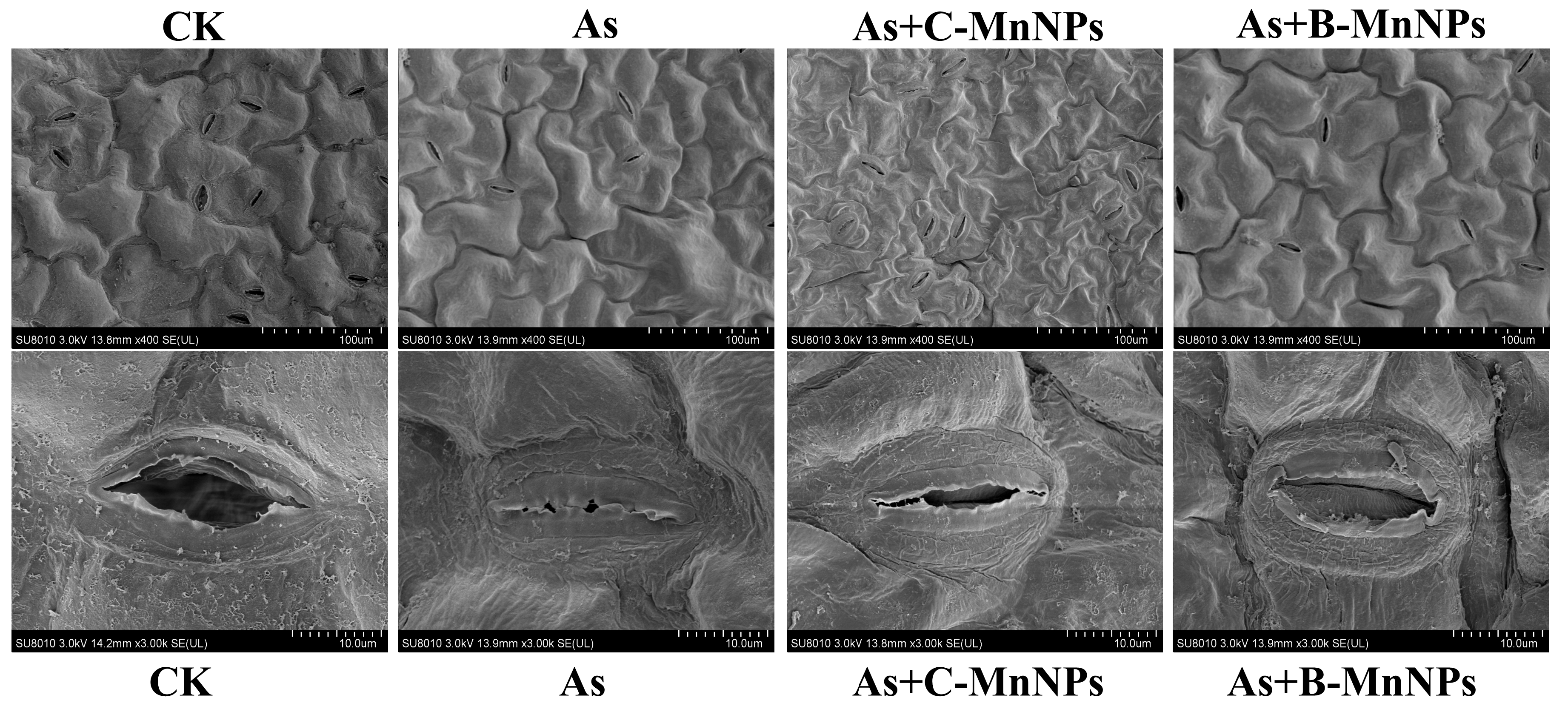 - Anas, M.; Bibi, S.; Farwa, U.; Khan, A.; Quraishi, U.M. Manganese oxide nanoparticles elicit cadmium tolerance in wheat seedlings by ionomic and phenomic adjustment, regulation of AsA–GSH pathway, cellular thickness recovery, and antioxidant modulation. Environ. Sci. Nano 2024, 11, 4588–4605. [Google Scholar] [CrossRef]