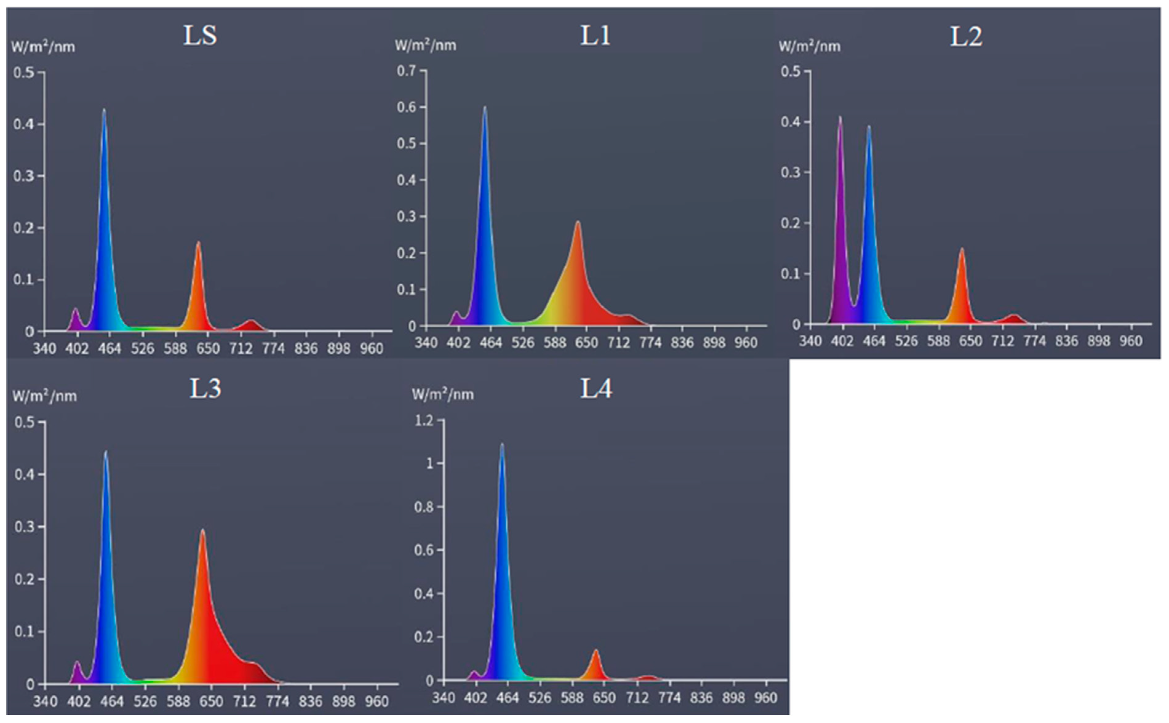 - Al Murad, M.; Razi, K.; Jeong, B.R.; Samy, P.M.A.; Muneer, S. Light Emitting Diodes (LEDs) as Agricultural Lighting: Impact and Its Potential on Improving Physiology, Flowering, and Secondary Metabolites of Crops. Sustainability 2021, 13, 1985. [Google Scholar] [CrossRef]