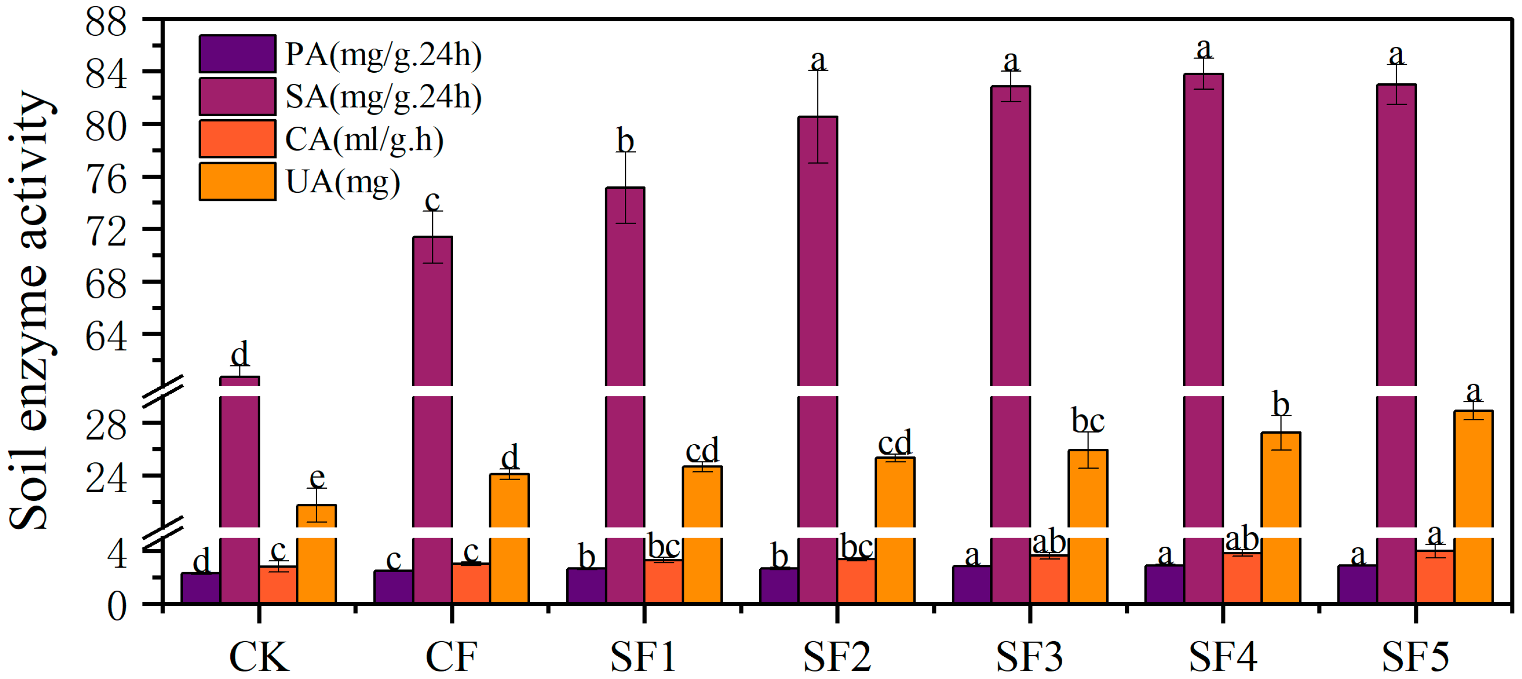 19]. Catalase, widely distributed in the soil matrix and organisms, effectively alleviates the potential toxicity of metabolically derived hydrogen peroxide to organisms. Its activity level is closely related to the abundance of soil organic matter and fertility status, making it an indicator of soil oxidation intensity [