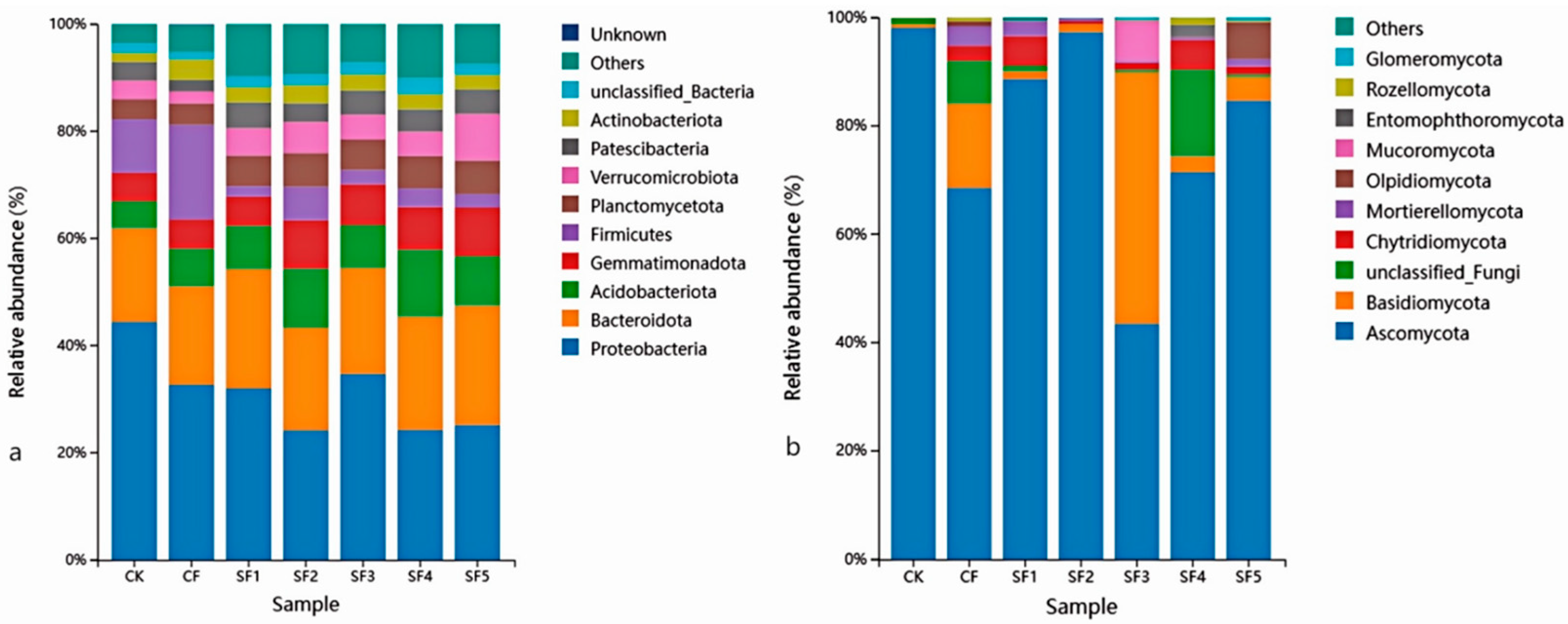 24]. Organic fertilizer provides abundant organic matter and nutrients to soil microorganisms, promoting the growth and reproduction of microbial communities, thereby enhancing soil microbial diversity. The composition and function of soil microbial communities have a significant impact on soil fertility and ecosystem functioning [