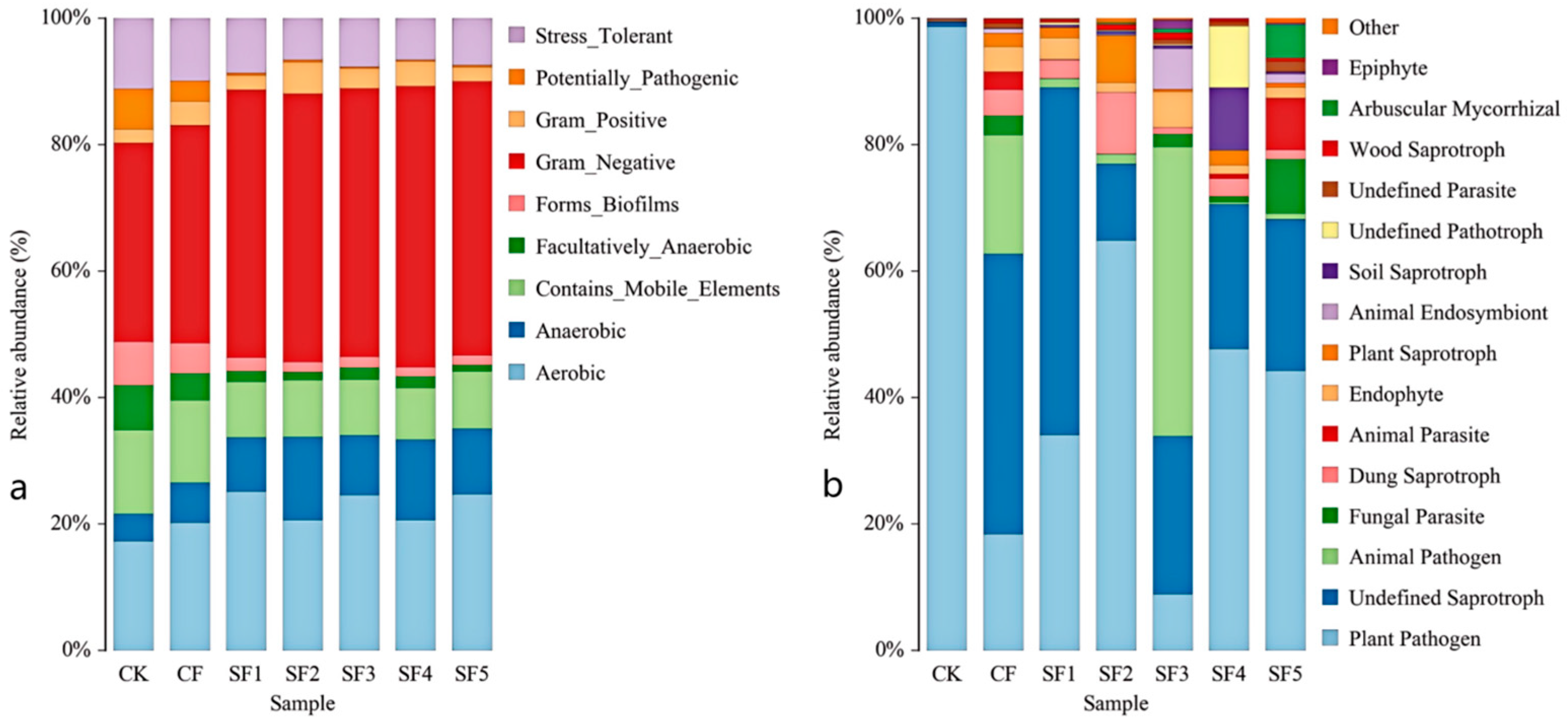 The application of organic fertilizer also significantly influenced the composition of the soil fungal community. Ascomycota, the most species-rich phylum in the fungal kingdom, plays a key role in decomposing organic matter by releasing locked-up nutrients such as carbon, nitrogen, and phosphorus into forms accessible to plants. This process is central to global carbon and nutrient cycling. However, Ascomycota also includes major pathogens responsible for sugar beet powdery mildew. In this study, the SF3 treatment significantly reduced the relative abundance of Ascomycota. BugBase-based prediction of high-level phenotypic functions of the soil bacterial community revealed that organic fertilizer application reduced the relative abundance of plant pathogens while increasing the proportions of endophytes and arbuscular mycorrhizal fungi, which may help enhance plant disease resistance and nutrient uptake capacity. The SF3 treatment also significantly increased the relative abundance of Basidiomycota and Mucoromycota, both of which play important roles in soil ecosystems by participating in the decomposition of organic matter and nutrient cycling. This may be attributed to the appropriate application rate of organic fertilizer, modifying the soil environment in a way that promotes the growth of these beneficial microbial groups. These results indicate that organic fertilizer application has the potential to increase the abundance of beneficial soil microorganisms. Previous studies have also confirmed that partial substitution of chemical fertilizers with organic fertilizers significantly affects soil microbial diversity and community structure. These results indicate that organic fertilizer application has the potential to increase the abundance of beneficial soil microorganisms. This study reveals the regulatory effects of four consecutive years of organic fertilizer substitution on soil microbial communities; however, there are several limitations in the research. For instance, soil pH, a key indicator, was not simultaneously measured, and this should be supplemented as a critical index in subsequent studies. Secondly, since the type of organic fertilizer was changed during the third year of the experiment, follow-up research will continue to monitor the impacts of this change. Additionally, the measured indicators were limited to soil nutrients, enzyme activities, and microbial community structure, failing to fully capture the specific changes in sugar beet rhizosphere soil. Therefore, future research should establish a multi-scale observation system and integrate multi-omics technologies such as metagenomics and metabolomics to systematically elucidate the dynamics of microbial communities and the long-term response mechanisms of soil functions under different organic fertilizer substitution ratios.