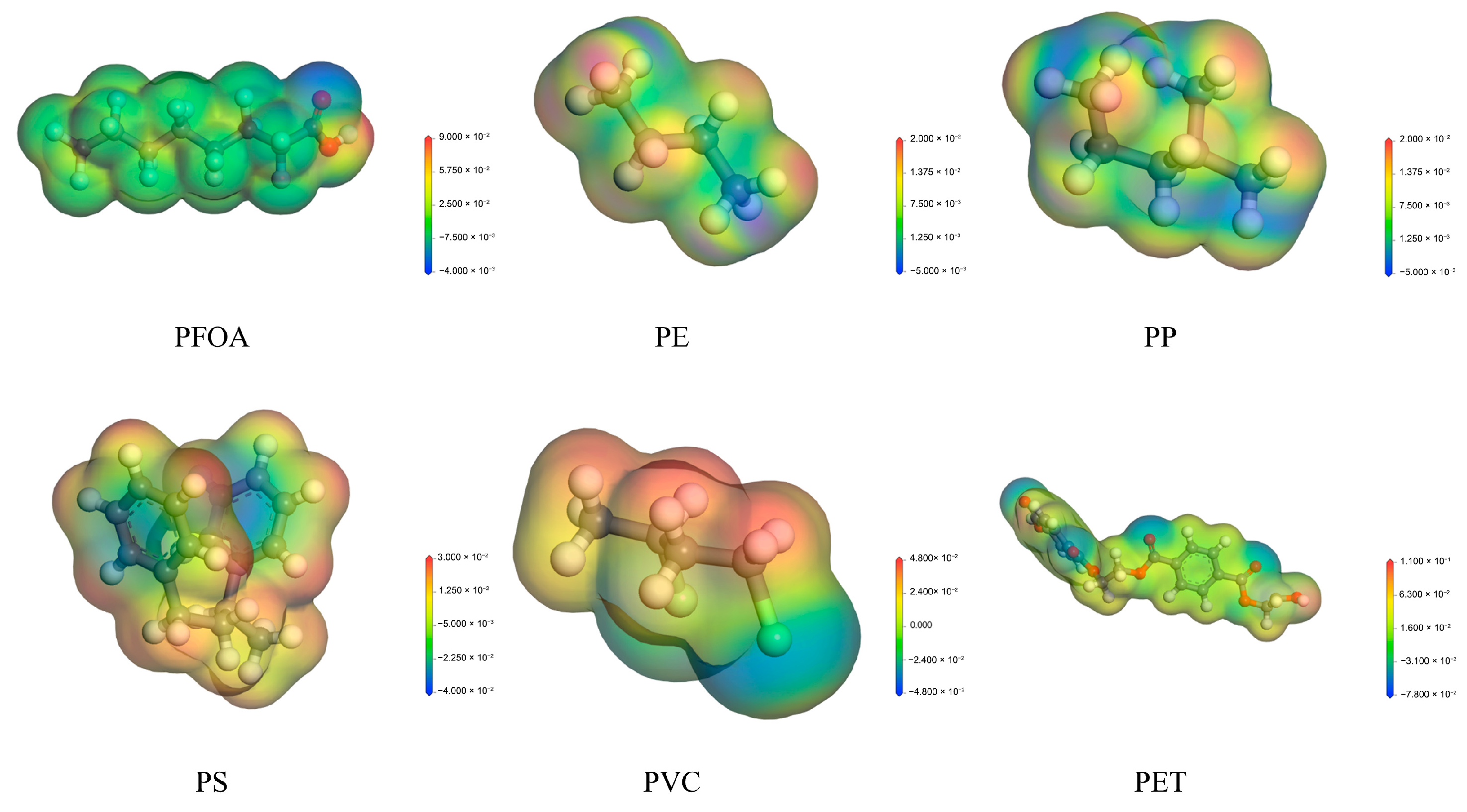 - Wu, P.; Cai, Z.; Jin, H.; Tang, Y. Adsorption mechanisms of five bisphenol analogues on PVC microplastics. Sci. Total Environ. 2019, 650, 671–678. [Google Scholar] [CrossRef]