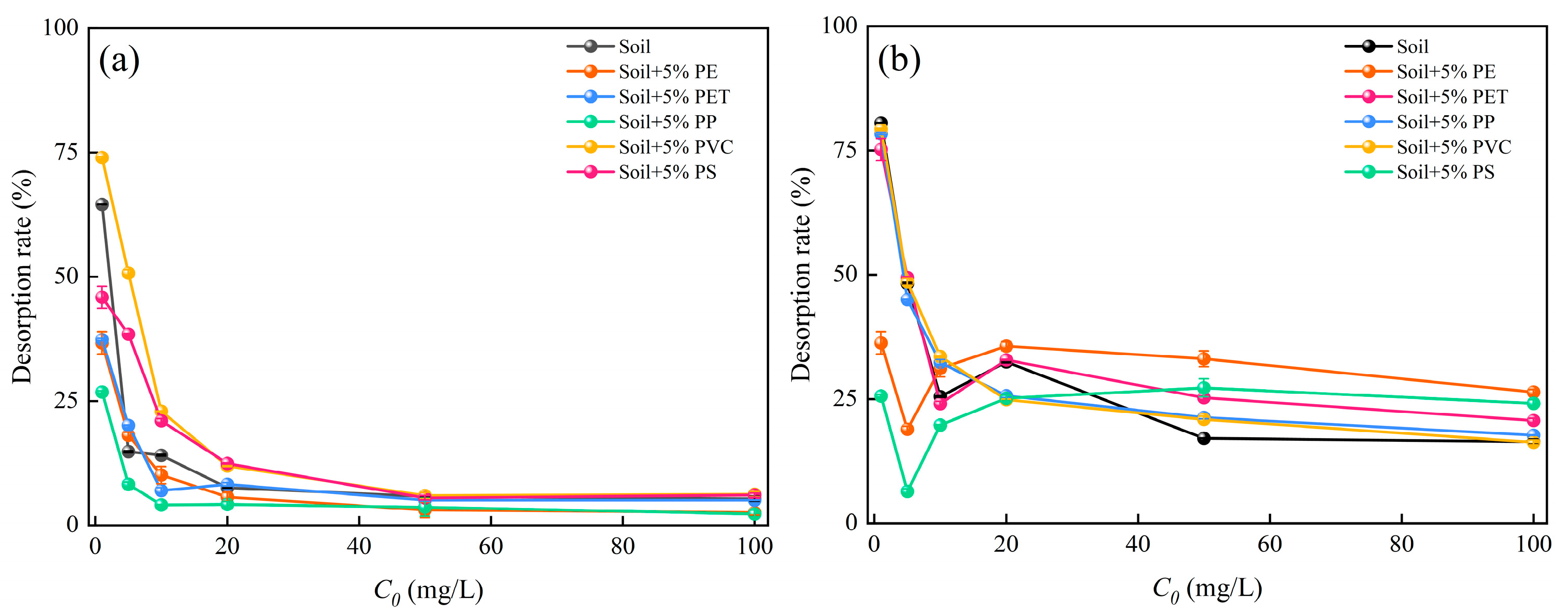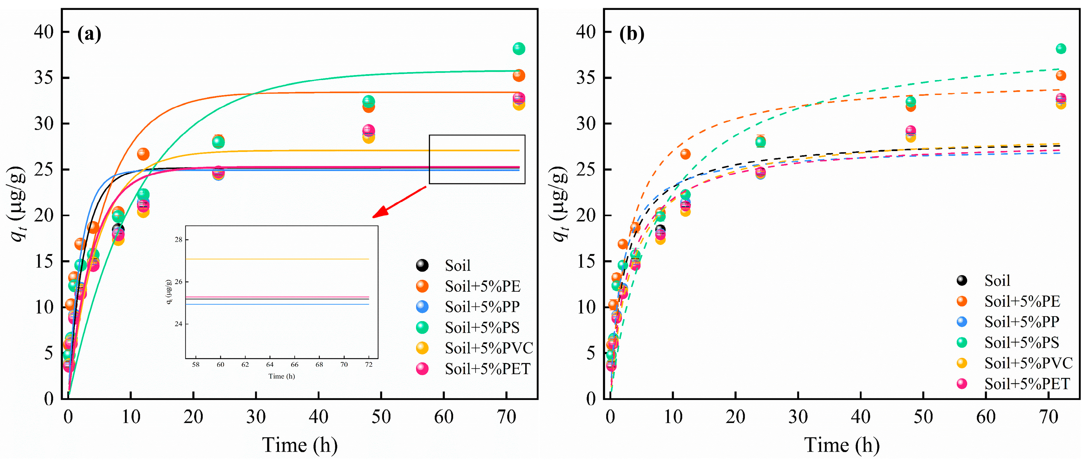 - Kaihe, L.; Cong, M.; Shikun, C.; Zifu, L. Research Progress on Adsorption, Migration, and Compound Toxic of Microplastics and Antibiotics in Soil. Environ. Sci. 2025, 46, 5271–5282. [Google Scholar] [CrossRef]