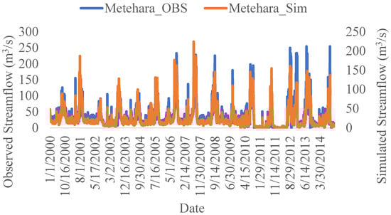 Linear regression of observed and simulated Metehara streamflow (2000–2014).