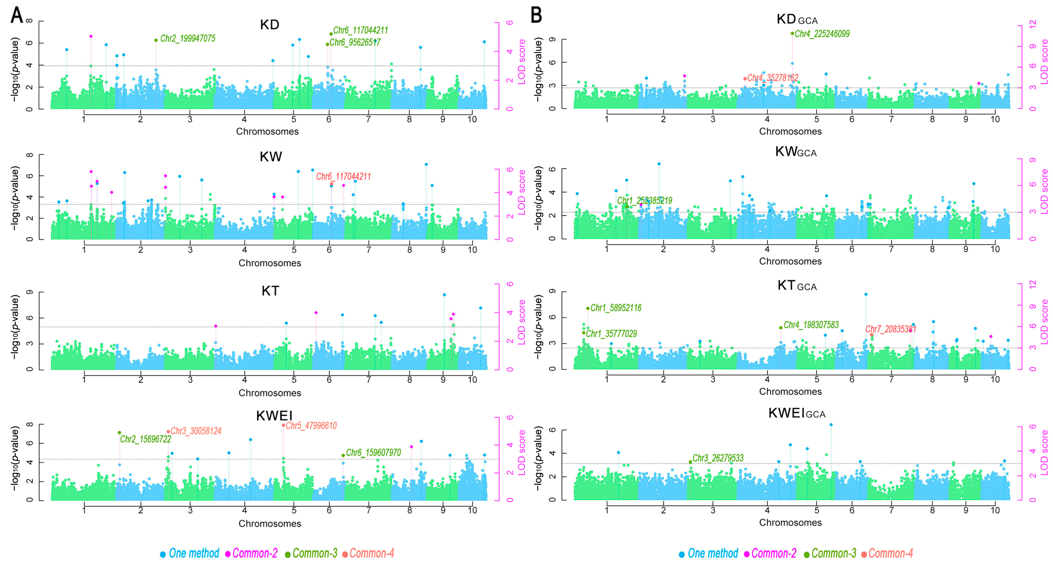 APA StyleLiu, X., Jia, X., Hu, F., Jian, L., Zheng, Y., Zhao, Y., Guo, J., Cui, Y., & Zhu, L. (2025). Mining Candidate Genes for Kernel-Related Traits and General Combining Ability in Maize Based on Multi-Locus Genome-Wide Association Studies. Agronomy, 15(12), 2806. https://doi.org/10.3390/agronomy15122806