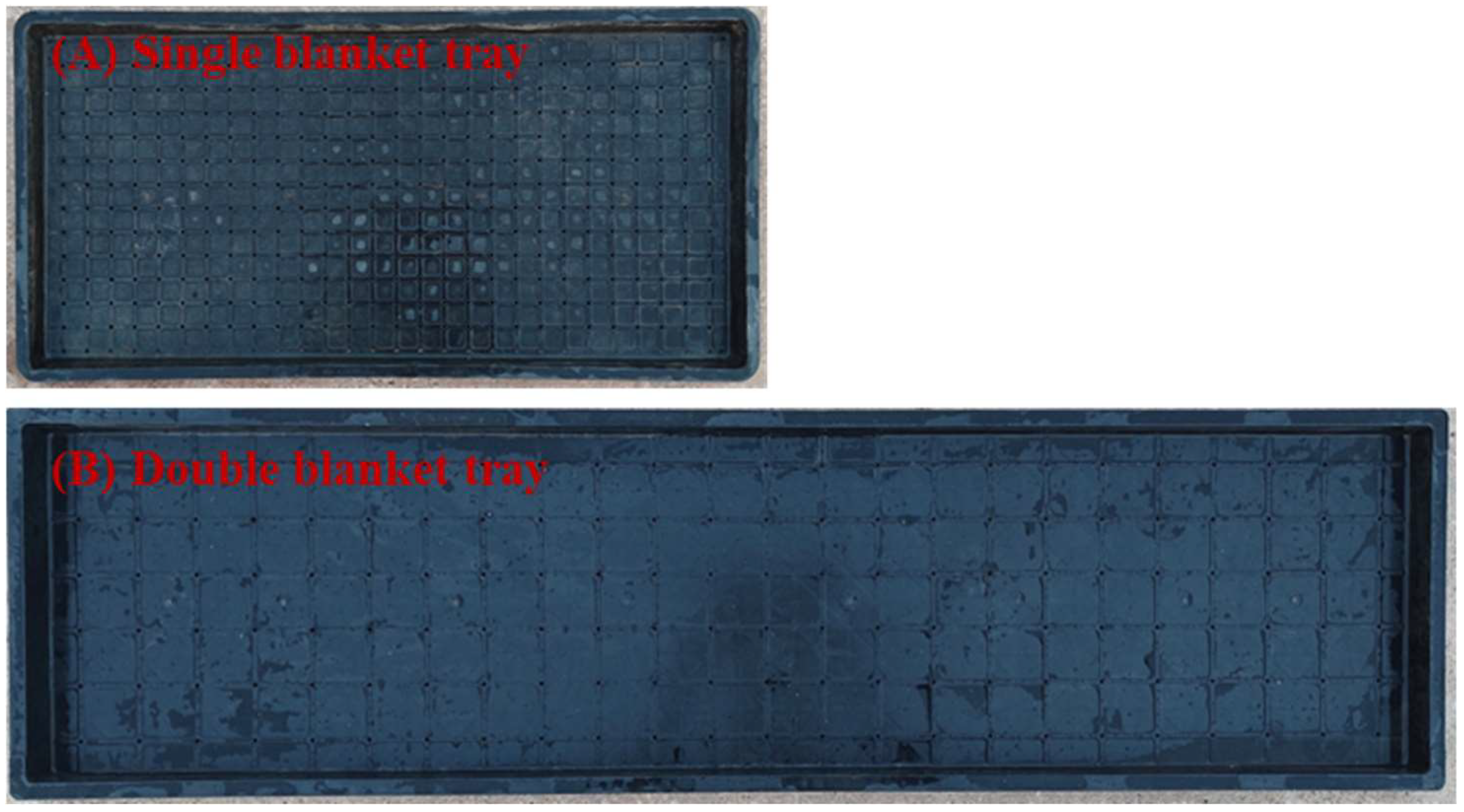 | Single blanket—Nutrient soil | 391.95 a | 121.32 b | 90.91 b | 22.51 a | 9.69 b |