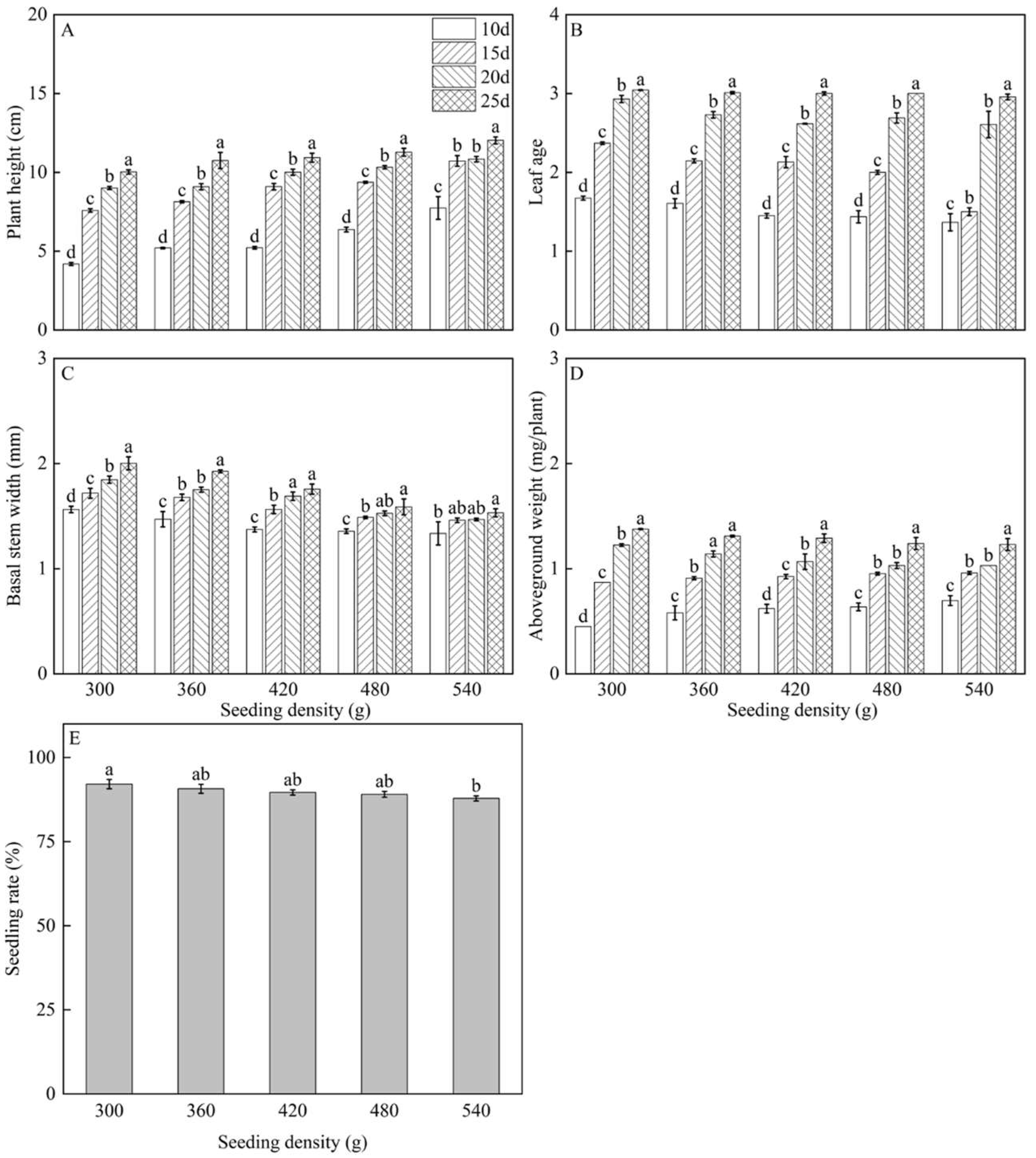 3.2. Effects of Different Seeding Densities and Age on Seedlings