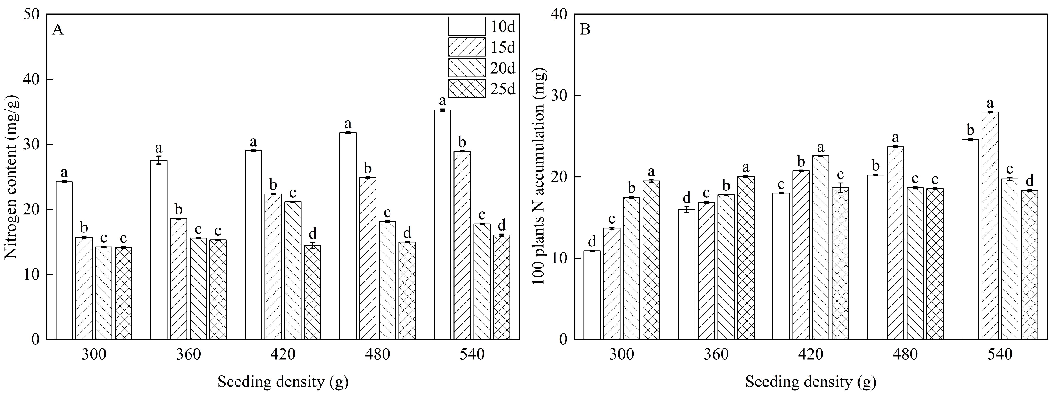 | 100 plants N accumulation (mg) | 11.93 c | 13.03 b | 17.47 a |