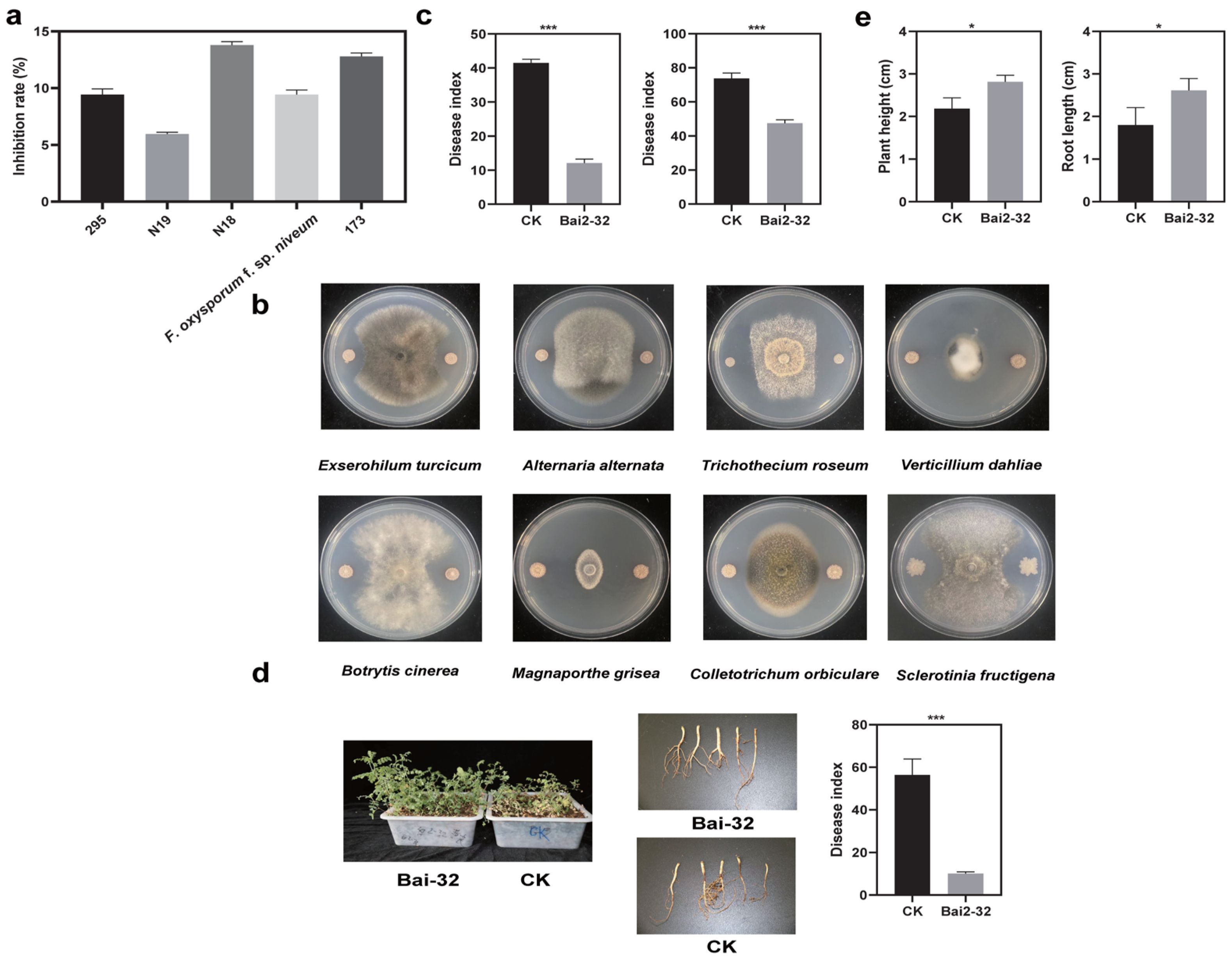 2.5. The Control Efficacy of Bai2-32 in Greenhouse Conditions