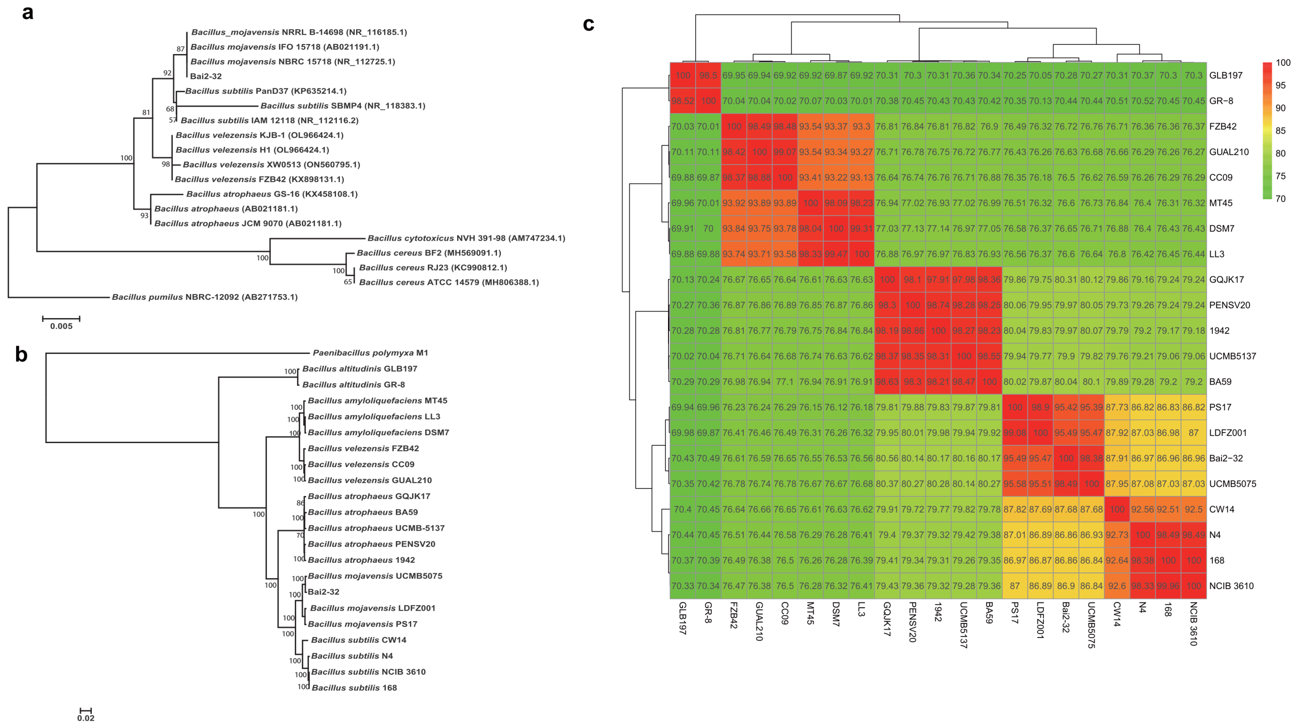 Chicago/Turabian StyleSha, Yuexia, Qingchao Zeng, Yanan Zhao, and Bo Yang. 2025. "Exploring the Genome of Bacillus mojavensis Bai2-32 Against Root Rot Disease in Lycium barbarum L." Agronomy 15, no. 12: 2832. https://doi.org/10.3390/agronomy15122832