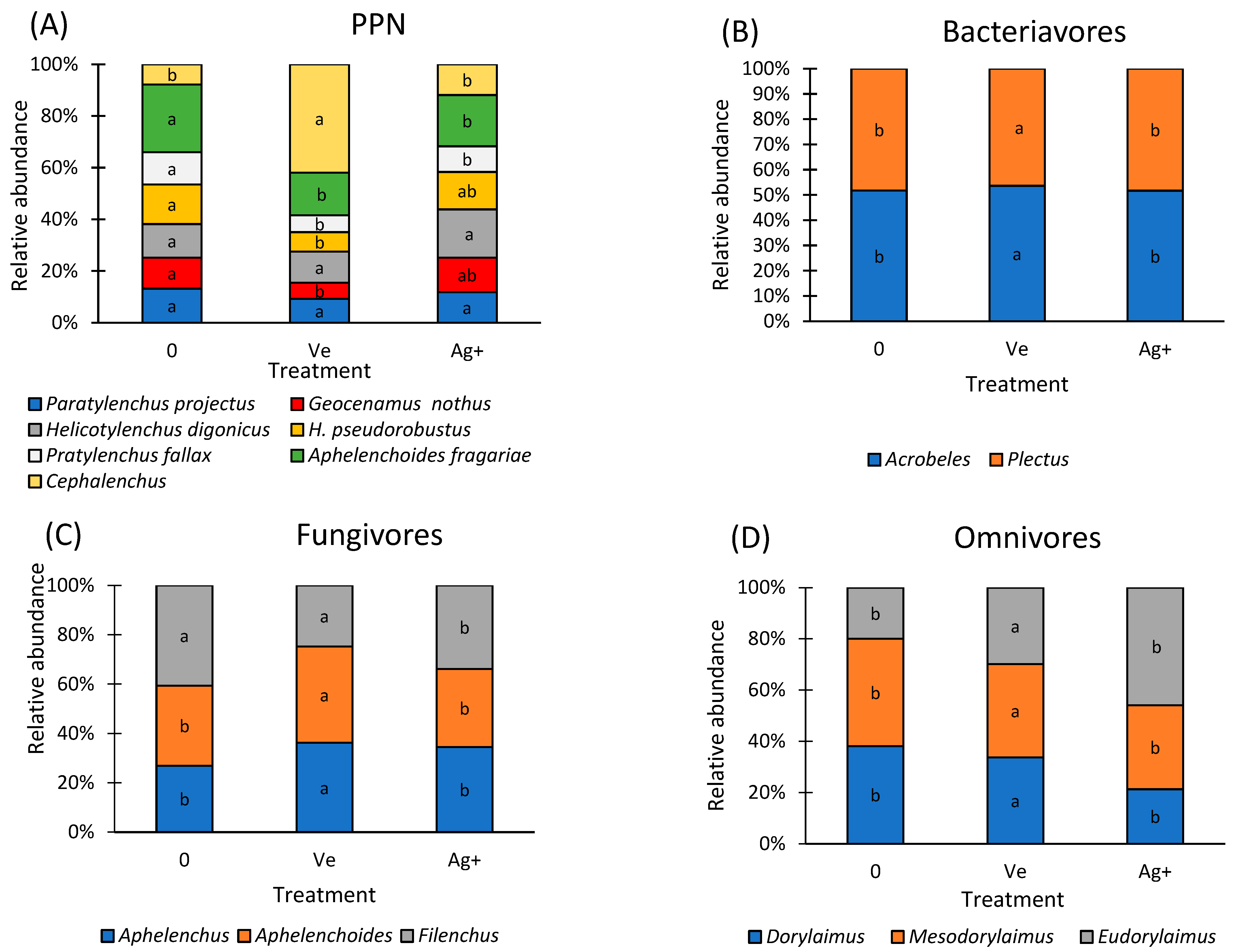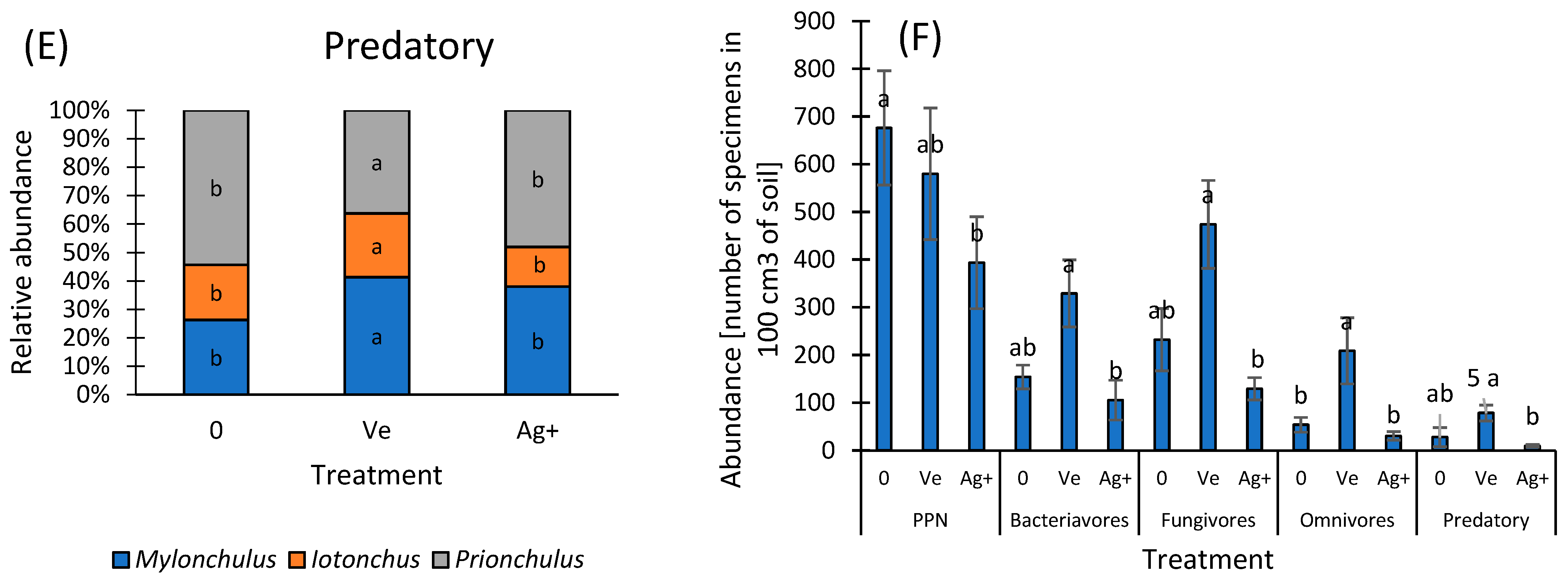 - Furmanczyk, E.M.; Kozacki, D.; Ourry, M.; Bickel, S.; Olimi, E.; Masquelier, S.; Turci, S.; Bohr, A.; Maisel, H.; D’Avino, L.; et al. An Analysis of Soil Nematode Communities Across Diverse Horticultural Cropping Systems. Soil. Syst. 2025, 9, 77. [Google Scholar] [CrossRef]