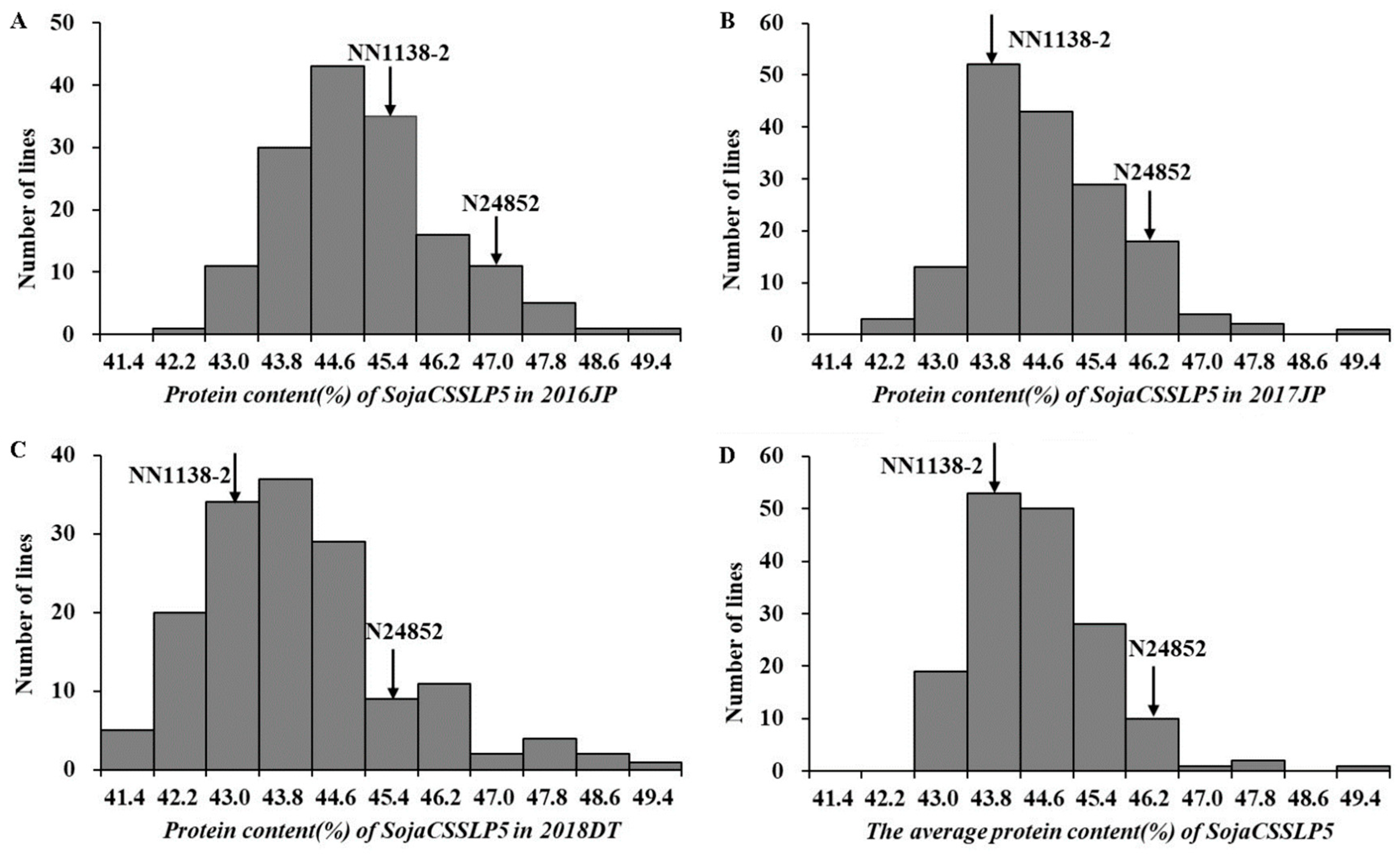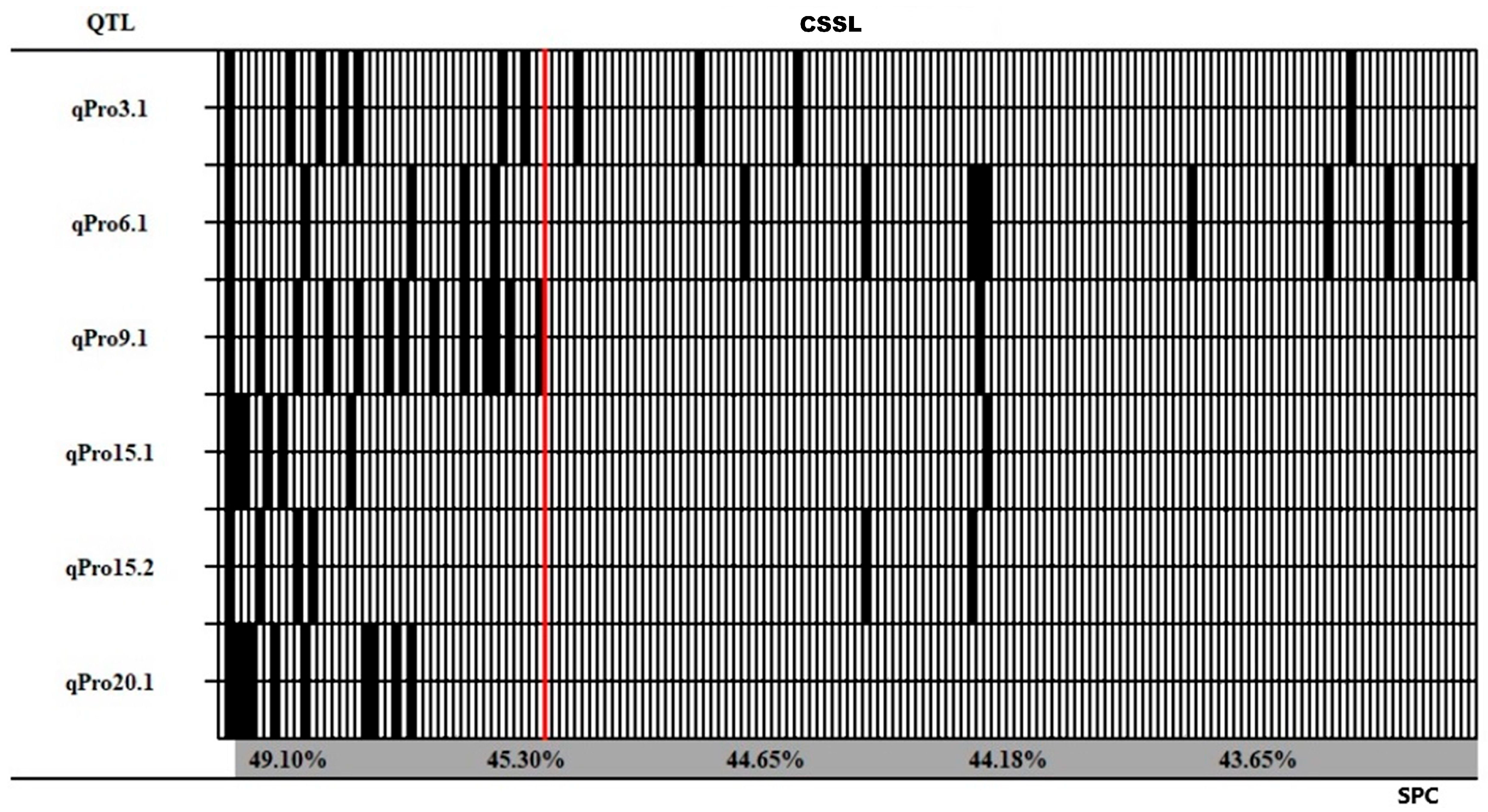 3.1. Performance of Protein Content Among the CSSL Population and Its Parents