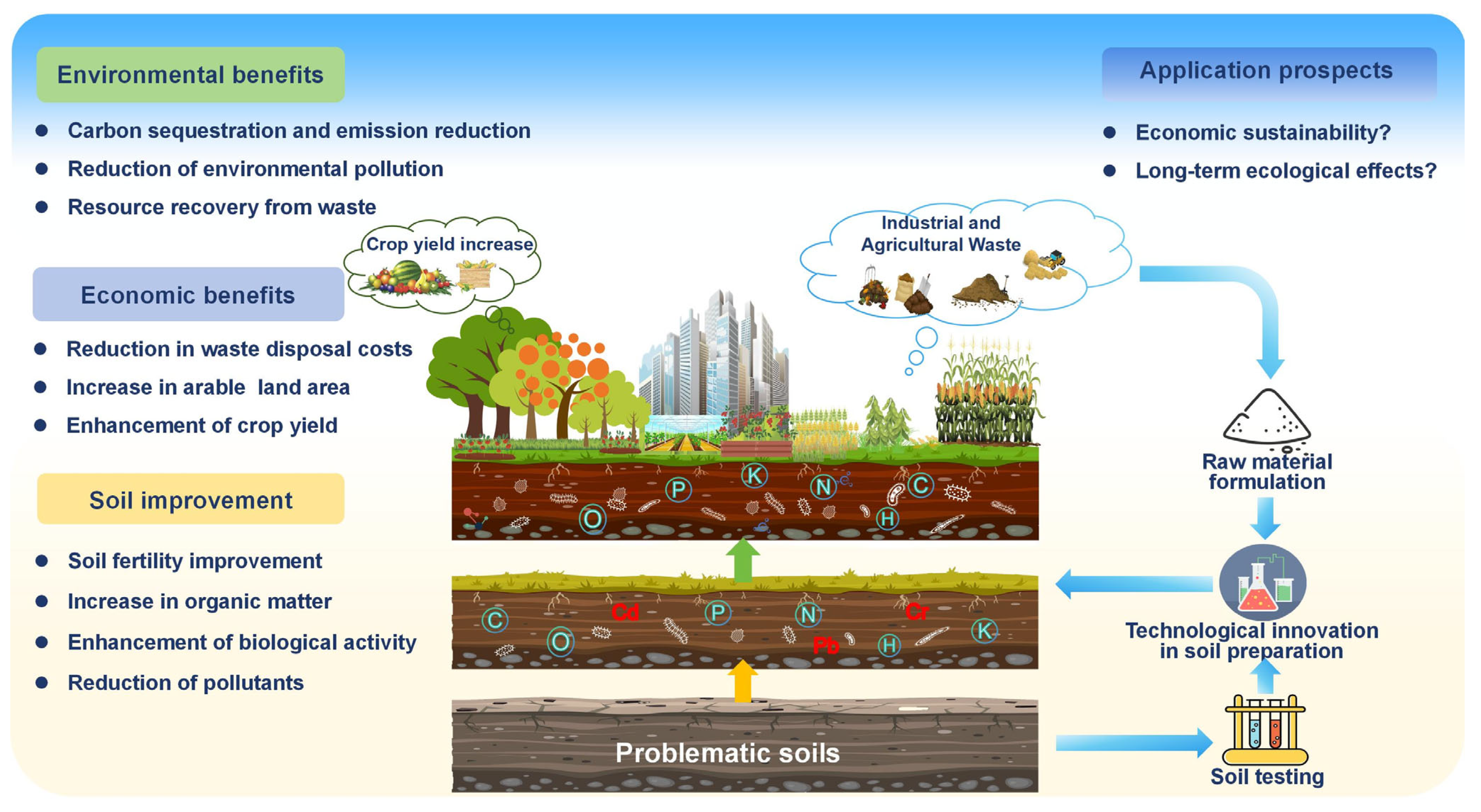 - Ecological effects and application assessment of agricultural Technosols. Integrate soil biome and microbiome design into Technosols construction to evaluate changes in soil biodiversity and functionality. Introduce functional microorganisms to accelerate soil network formation and assess their impacts on soil health and crop growth. Establish dynamic monitoring systems to study key nutrient cycles and long-term pollutant release patterns in reclaimed soils, evaluating risks to the food chain. Develop low-carbon Technosols technologies to enhance ecosystem services, carbon sequestration, and emission reduction potential.