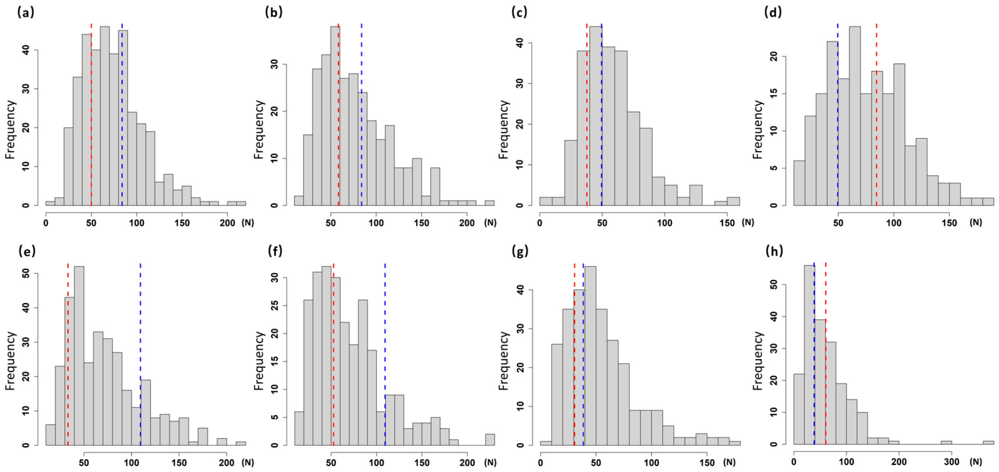 3.2. Analysis of Stem Strength Variation in Four Segregating Populations