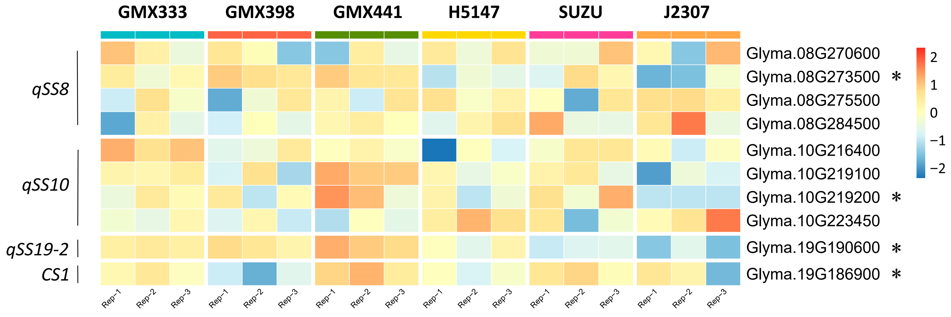 4.3. Prediction of Candidate Genes in qSS8, qSS10, and qSS19-2