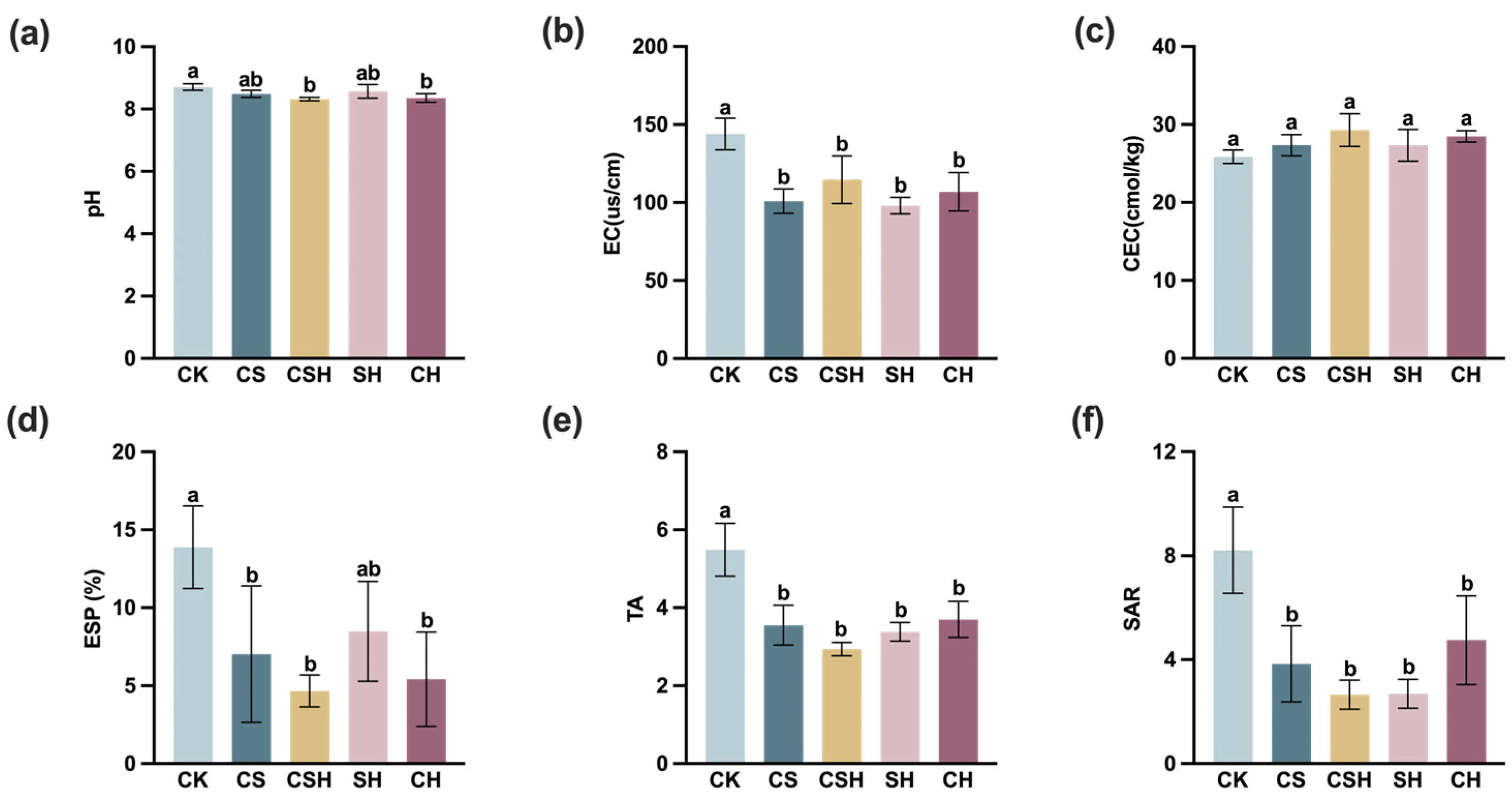 4.1. Effect of Adding Amendments on Soil Saline–Alkali Characteristics