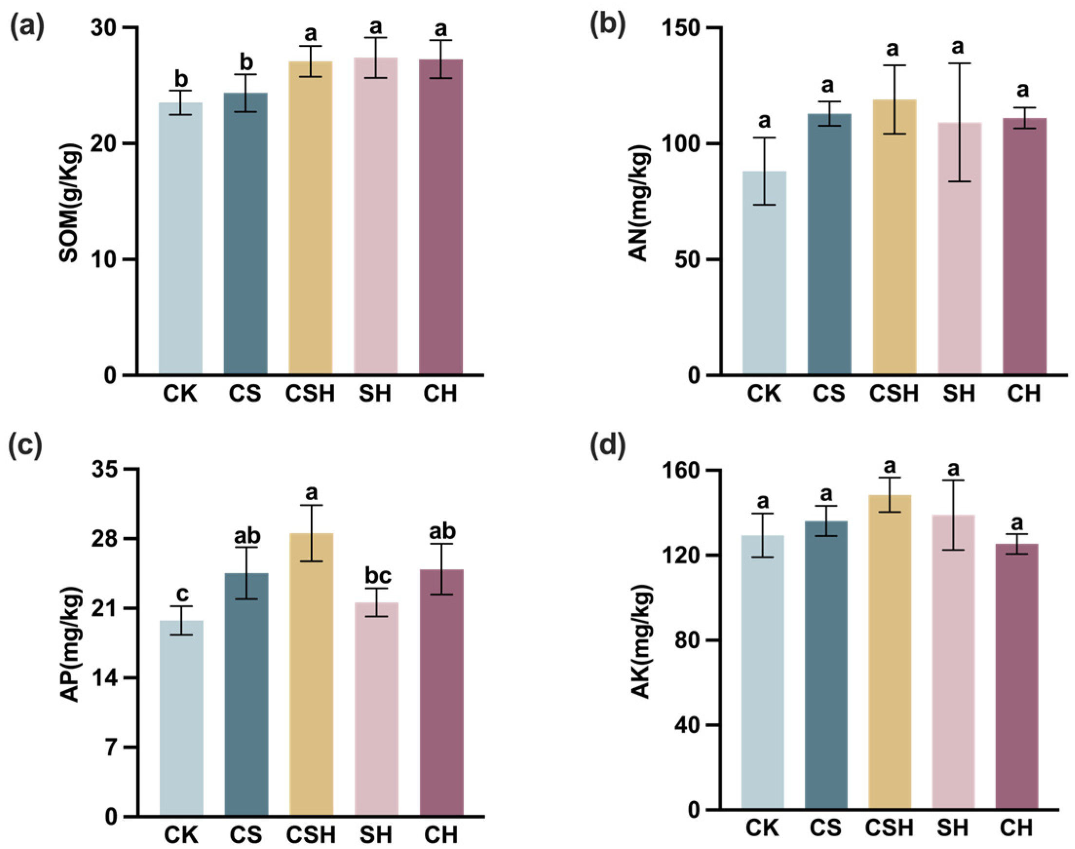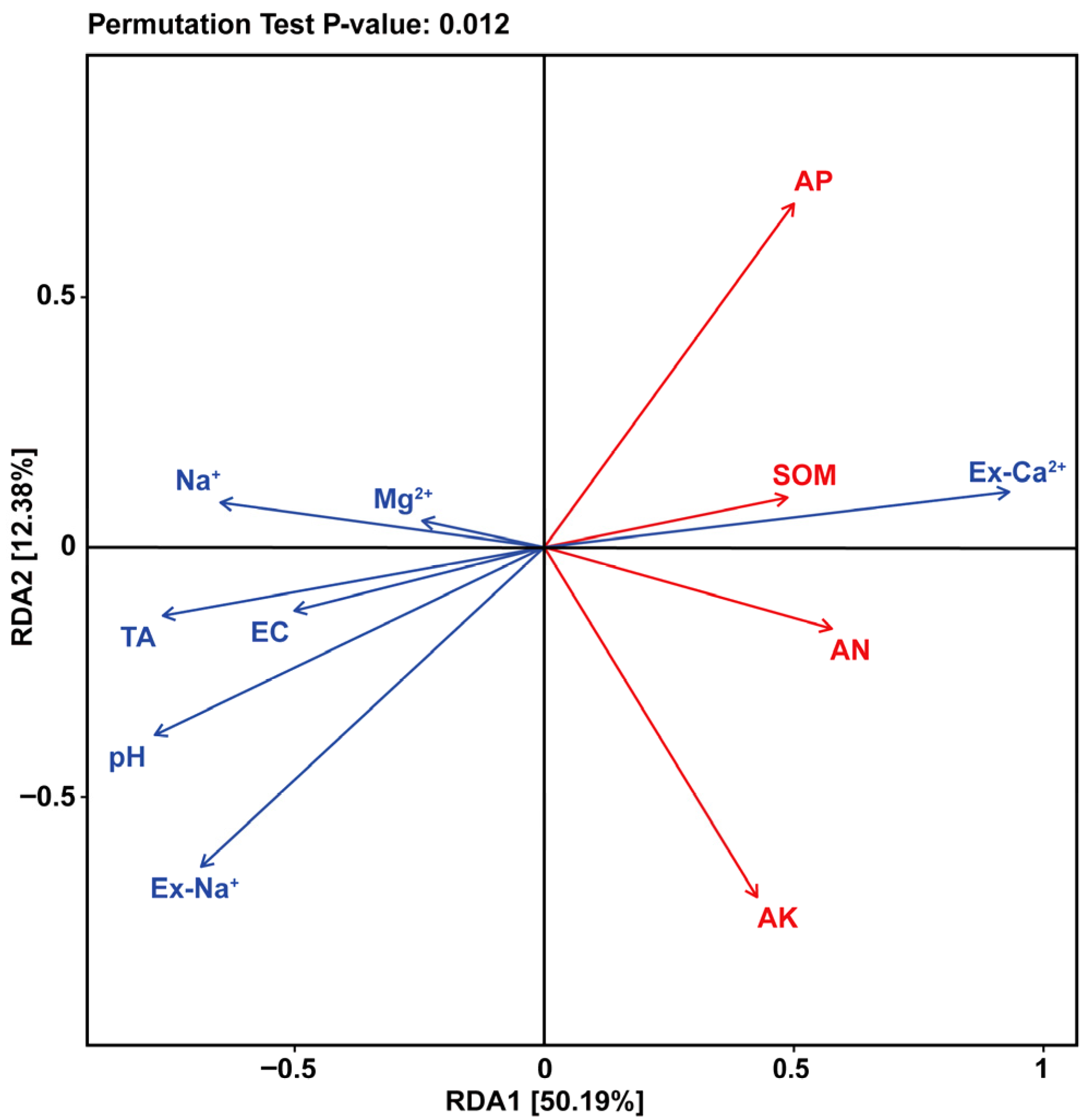 | SOM (g kg−1) | AN (mg kg−1) | AP (mg kg−1) | AK (mg kg−1) | pH | EC (Us/cm) |