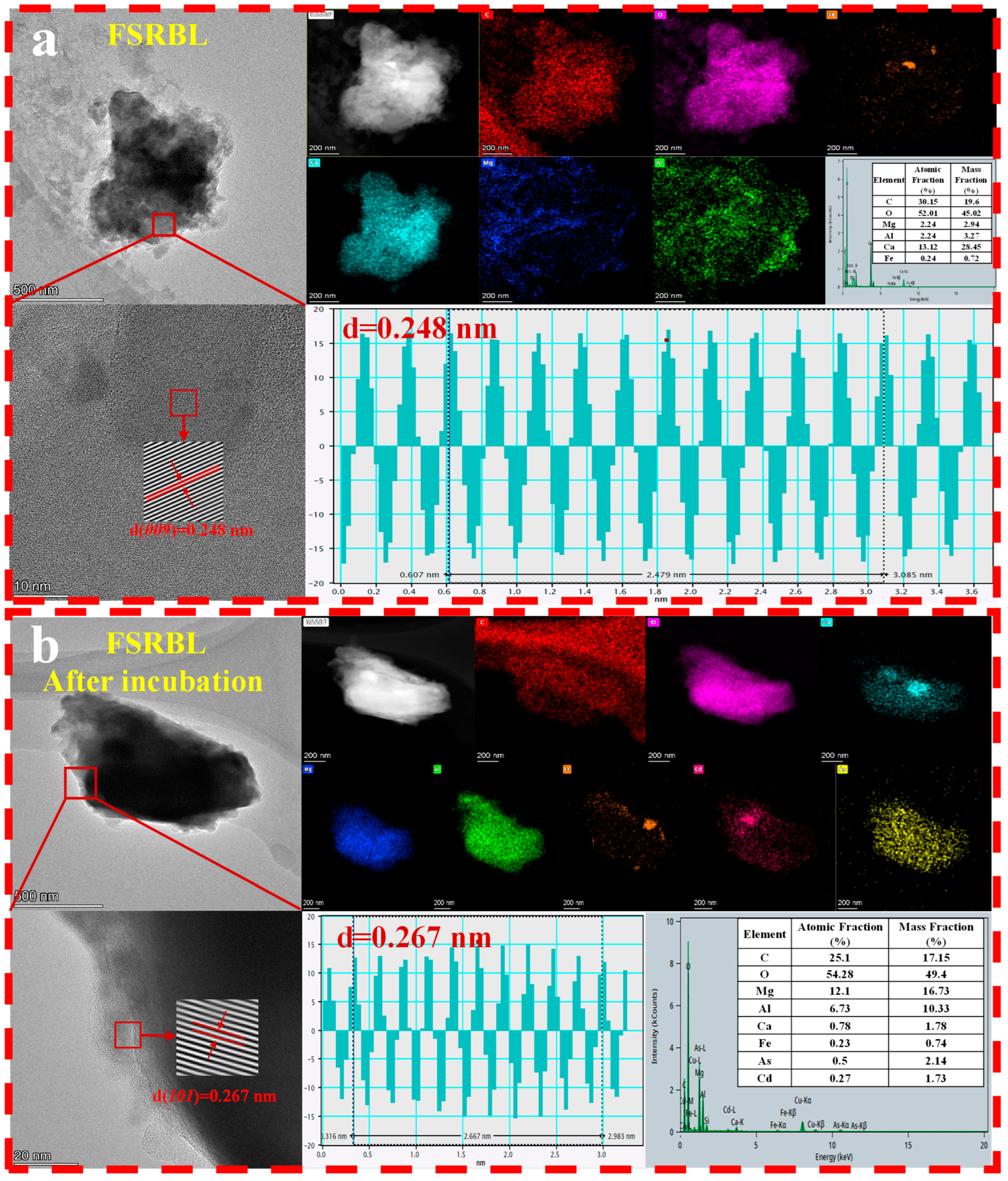 3.5.1. SEM/TEM-EDS Analysis of Micro-Interface Between Soil and FSRBL
