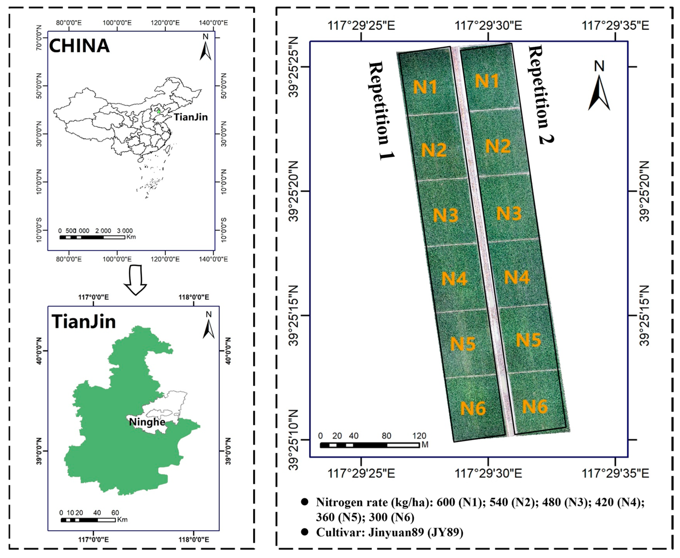 - Wang, W.; Xia, Y.; Yao, X.F.; Tian, Y.C.; Liu, X.J.; Ni, J.; Cao, W.X.; Yan, Z. Estimating leaf nitrogen concentration with three-band vegetation indices in rice and wheat. Field Crops Res. 2012, 129, 90–98. [Google Scholar] [CrossRef]
