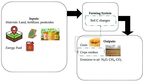 System boundaries of the farming systems in the life cycle of maize grain production “from field to farm gate”.