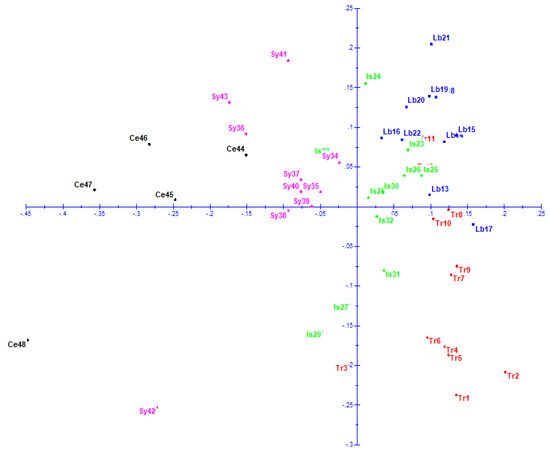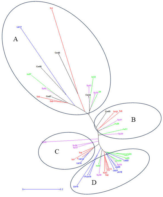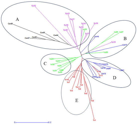 3.5. Mean Genetic Diversity Parameters for CAAT and SCoT Markers