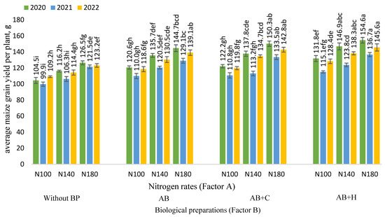 | y(2022)— maize grain yield per plant (g) | Without BP | y = 91.0 + 0.18x | 0.86 | 0.74 | p < 0.01 |