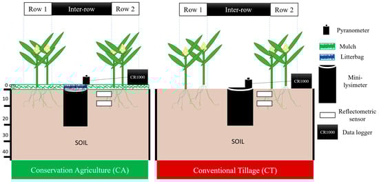 Spatial configuration of mini-lysimeters in conservation agriculture (CA) and conventional tillage (CT) field treatments.