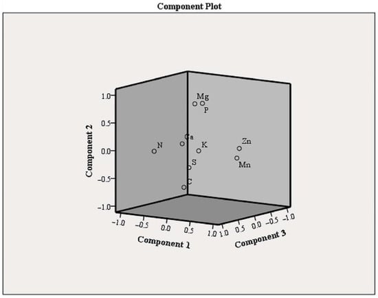 Component plot of elements (C, N, S, K, P, Ca, Mg, Zn, Mn) measured in the second sampling (06/22).