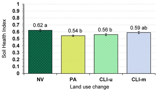 3.4. Overall Soil Health Index (0–0.3 m Profile)