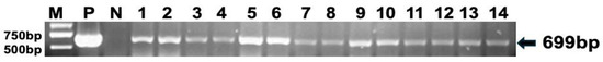 In this study, discrepancies were observed, in that genomic DNA PCR-positive samples yielded negative Southern blot results (Table 3, Figure 6). This phenomenon highlights the distinct sensitivities and specificities of these two techniques.