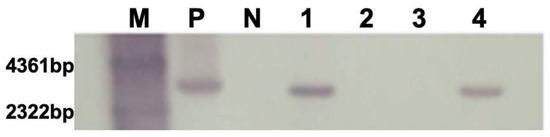 4.3. Possible Reasons for Genomic DNA PCR-Positive but Southern Blot-Negative Results