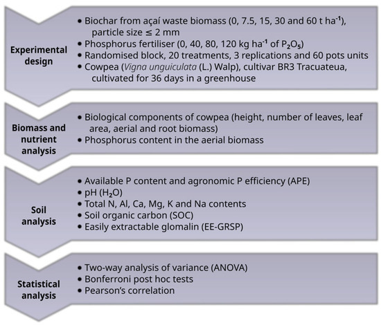 Braga ARdO, John V, Danielli CKAdO, Sousa HM, Danielli FE, Marques-dos-Santos CSdC, Oliveira DMd, Falcão NPdS. Açaí Waste Biochar Combined with Phosphorus Fertiliser and Phosphorus Use Efficiency in Cowpea (Vigna unguiculata (L.) Walp). Agronomy. 2025; 15(2):393. https://doi.org/10.3390/agronomy15020393