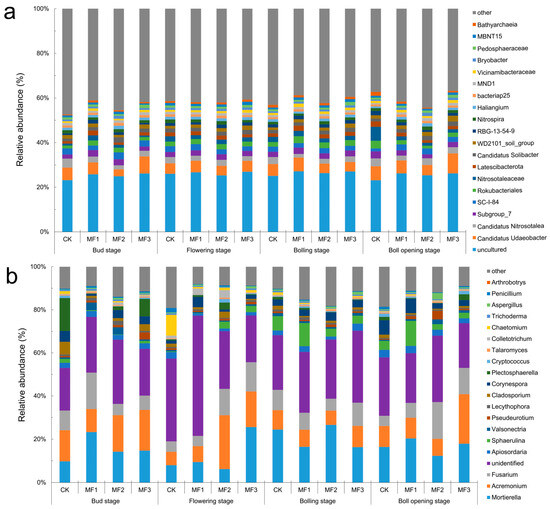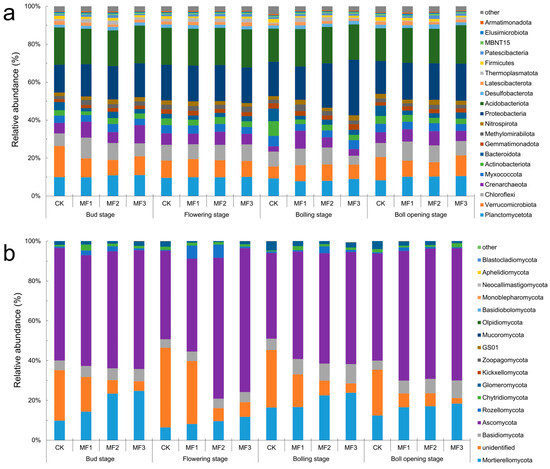 Chicago/Turabian StyleXie, Zhangshu, Xiaorong Wang, Xuefang Xie, Dan Yang, Zhonghua Zhou, Qiming Wang, Aiyu Liu, and Xiaoju Tu. 2025. "Complex Microbial Fertilizer Promotes the Growth of Summer-Sown Short-Season-Cultivated Cotton and Increases Cotton Yield in the Yangtze River Basin by Changing the Soil Microbial Community Structure" Agronomy 15, no. 2: 404. https://doi.org/10.3390/agronomy15020404