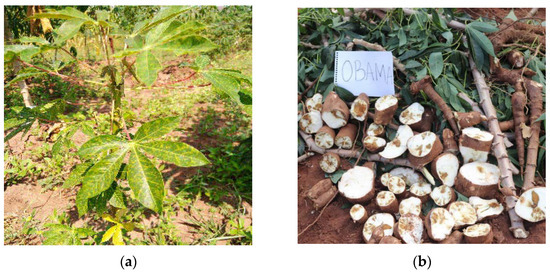 In Sub-Saharan Africa, cassava serves as a staple and food security crop [1,2]. It provides household income and employment, and in many regions, it has reached a high commercial value due to its high carbohydrate content and gluten-free properties [3,4]. In the Democratic Republic of the Congo (DRC), cassava is the main food crop for more than 80% of the population. DRC grows almost all cassava for domestic consumption [5,6]. With an average 47 MT yearly production, DRC is the second-largest producer in the world and due to the utilization of both leaves and roots, cassava remains the first fighter against food insecurity and provides a major source of income for farmers [3,5]. However, the output capacity of most varieties remains by far lower than the predicted yield potential. The main diseases—cassava brown streak disease (CBSD), cassava anthracnose disease, cassava green mite, cassava mealybug, cassava mosaic disease (CMD), cassava root necrosis disease (CRND), and cassava bacterial blight [7,8,9]—are key production constraints. CBSD has become the major threat to cassava production, leading to food insecurity in Central, Eastern, and Southern Africa. In DRC, while CMD is endemic to the whole country, CBSD is confined to the eastern regions and remains the major threat to cassava, while CRND contests the mid-belt in the western region.