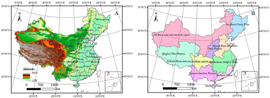Provincial administrative districts (A) and nine agricultural regions (B) in China.