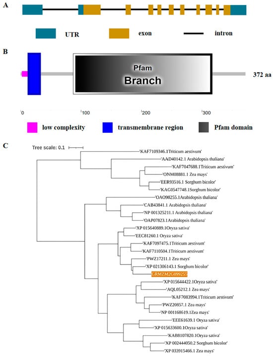 3.1. ZmC2GnT Encodes a Putative β-1,6-N-Acetylglucosaminyltransferase Protein
