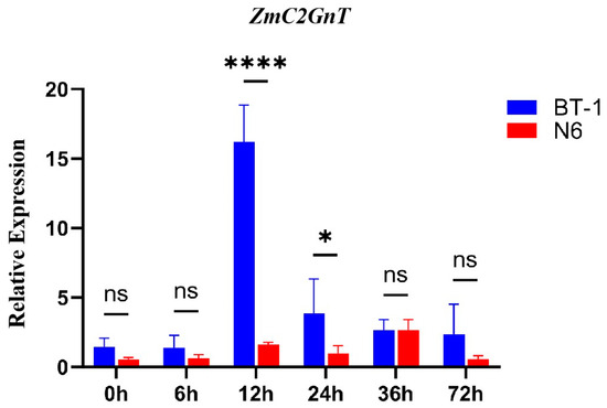 3.3. The Expression of ZmC2GnT Increases in Response to F. verticillioides Infection