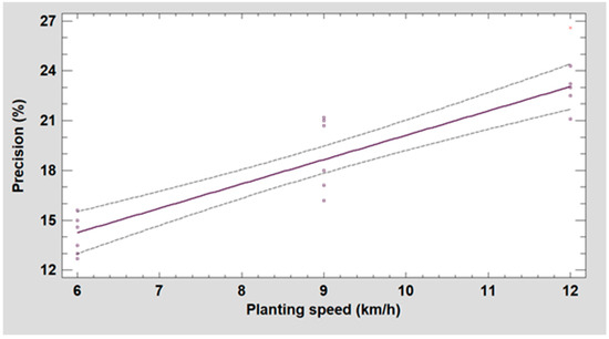 The relationship between precision and planting speed was calculated using a linear regression model (Figure 2).