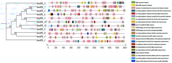 Distribution map of promoter cis-acting elements of SmSPL genes.