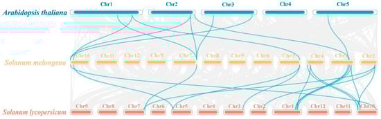 Within the TBtools (v2.142) software, multiple orthologous and paralogous gene maps play a crucial role. These maps could identify the homology between SPL genes in the Arabidopsis thaliana, tomato, and eggplant [,,,].