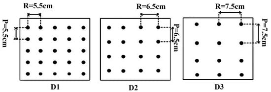 Schematic diagram of uniform seeding. Note: P and R denote plant and row spacing for wheat planting, respectively. D1, D2, and D3 corresponded to the three densities of 3.3 million plants-hm−2, 2.36 million plants-hm−2, and 1.77 million plants-hm−2, respectively, under uniform sowing.