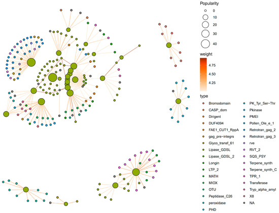 To further elucidate the function and regulatory network of the GDSL gene family, we analyzed and predicted the protein–protein interaction network. As illustrated in the figure, the GDSL interactive network in M. domestica consists of six distinct modules (Figure 6). Notably, Module 1 contains the highest number of members within the protein–protein interaction network, whereas Module 5 comprises the fewest, with only four proteins.