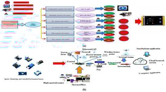 (a) Automatic control system, (b) integrated IoT-based smart farming system with cloud-based monitoring.