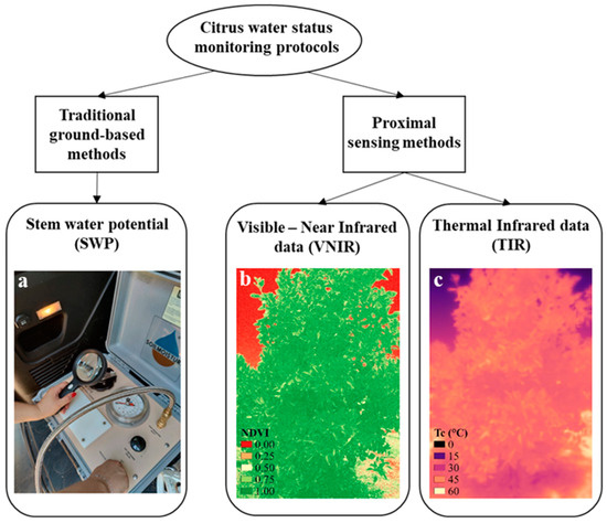 - Velazquez-Chavez, L.J.; Daccache, A.; Mohamed, A.Z.; Centritto, M. Plant-based and remote sensing for water status monitoring of orchard crops: Systematic review and meta-analysis. Agric. Water Manag. 2024, 303, 109051. [Google Scholar] [CrossRef]