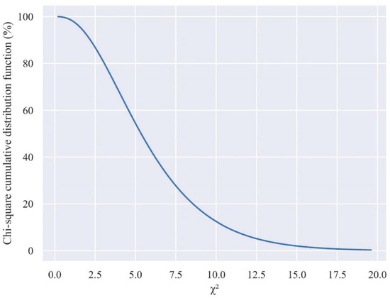 Theoretical threshold determination of the global nutrient imbalance index (GNII) using the chi-square cumulative distribution function with 6 degrees of freedom (DFs).
