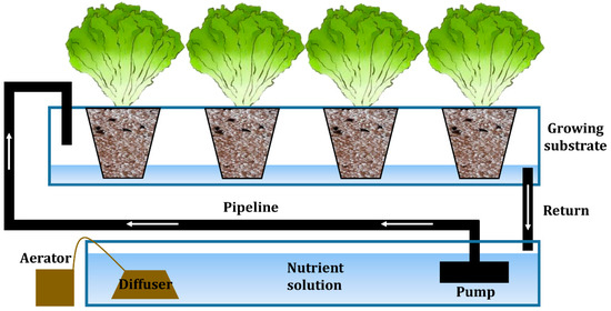 Scheme of NFT hydroponic system (adapted from Velazquez-Gonzalez et al. [53]).