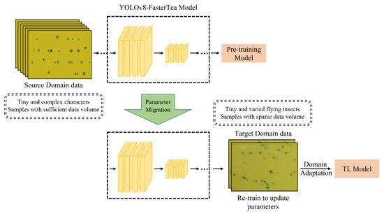 22]. The premise of the generative model’s capability is the need for a large amount of training data, which is contradictory to the few-shot learning problem. Therefore, this manuscript utilizes transfer learning to tackle the challenge of insufficient tea pest datasets. Transfer learning applies the effective features learned from a source domain to a target domain, significantly improving the model’s performance on new tasks [