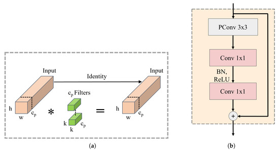 39]. As a feature extraction module, PConv only applies regular convolution to a subset of the input channels for spatial feature extraction while keeping the remaining channels unchanged. The specific structure is shown in